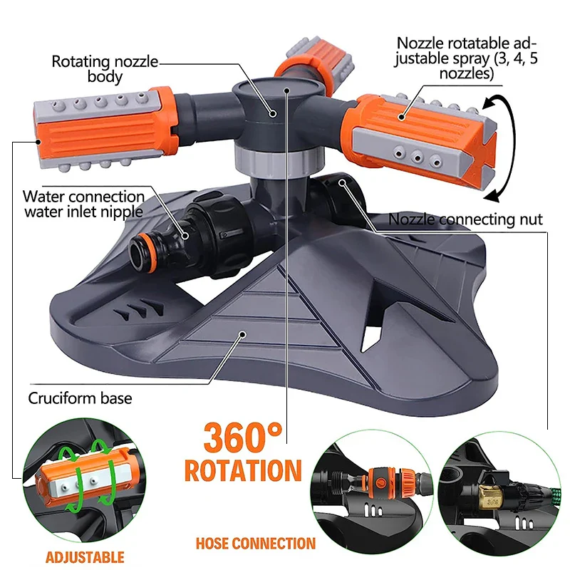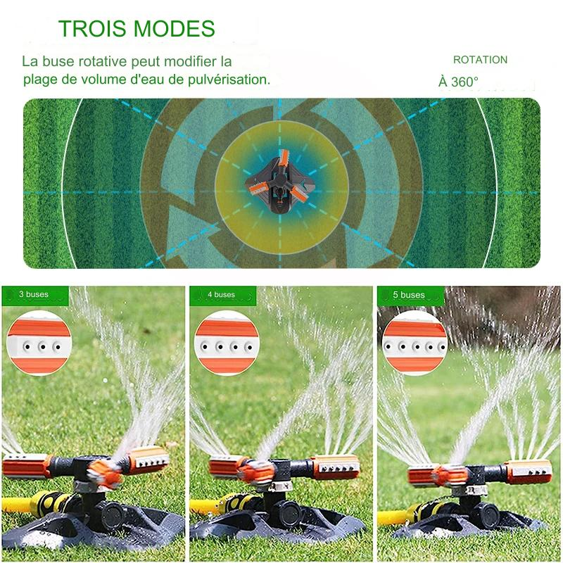 ➡️ TROIS TÊTES AVEC QUATRE BUSES CHACUNE : Notre arroseur est équipé de 3 têtes, chacune équipée de plusieurs buses, ce qui signifie une répartition optimale d’une quantité suffisante d’eau sur une grande surface, assurant une humidification parfaite de votre jardin, de vos parterres de fleurs et de vos plantes.